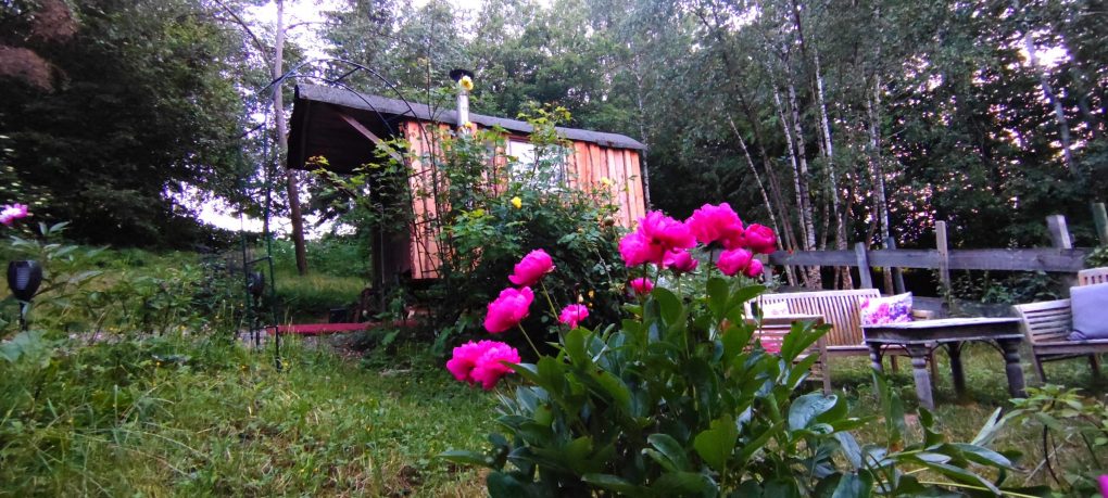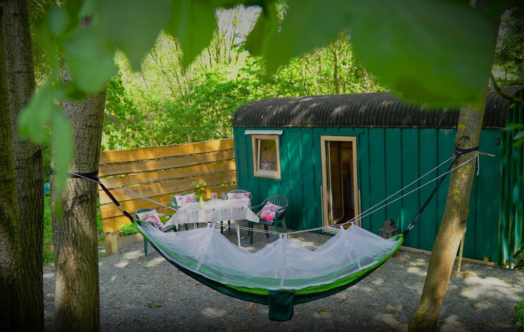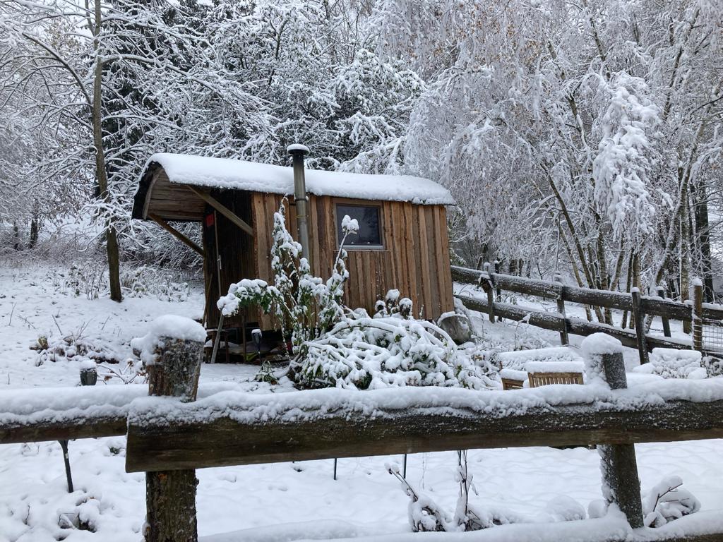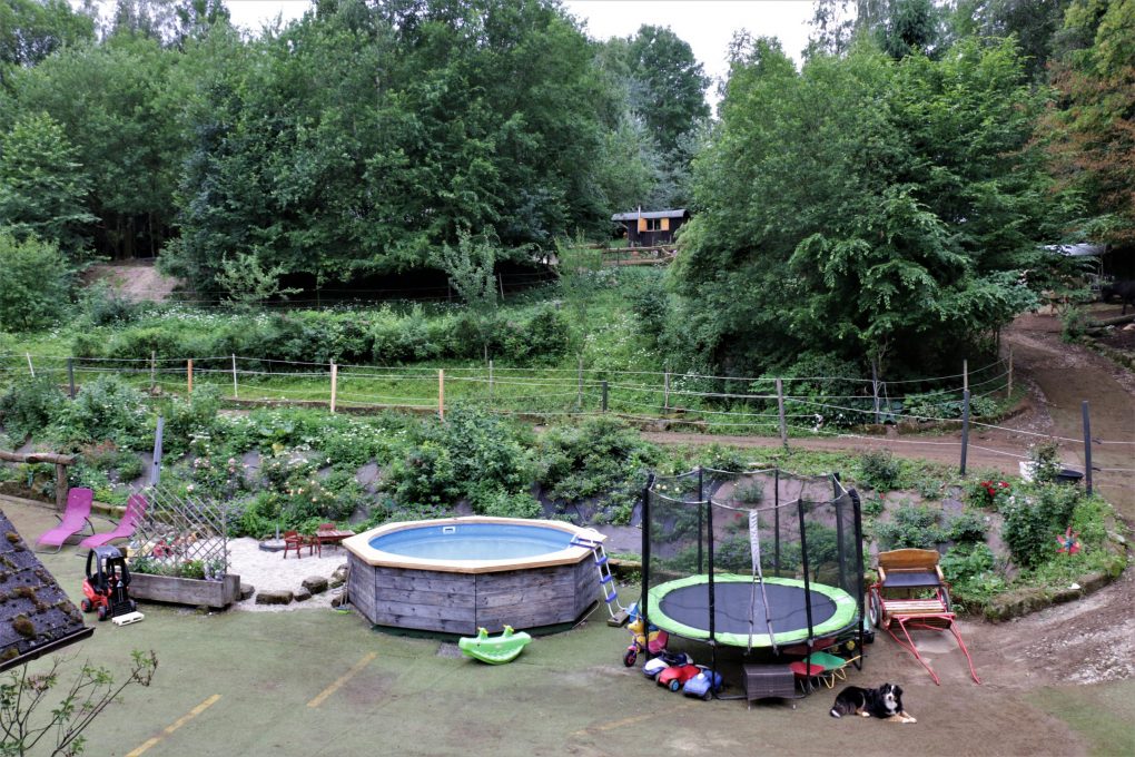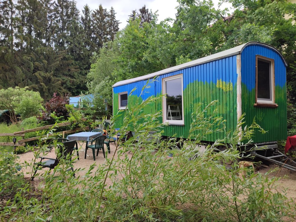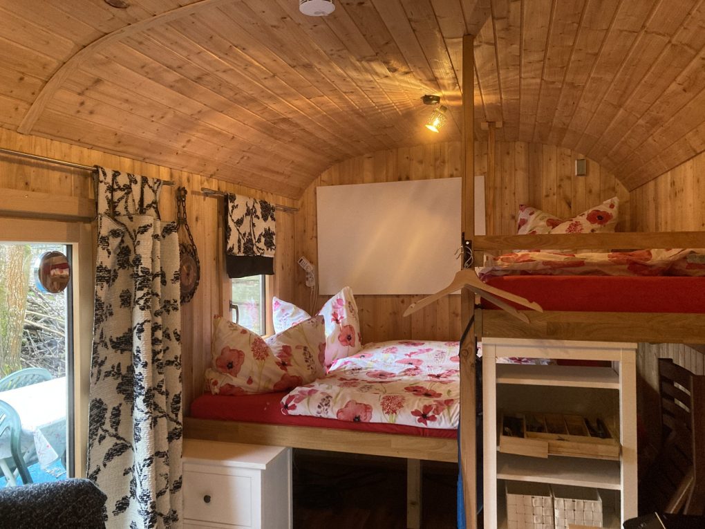 Hier unser Schäferwagen „Kuschelhöhle“, welches sich unterhalb unseres Wohnhauses befindet.