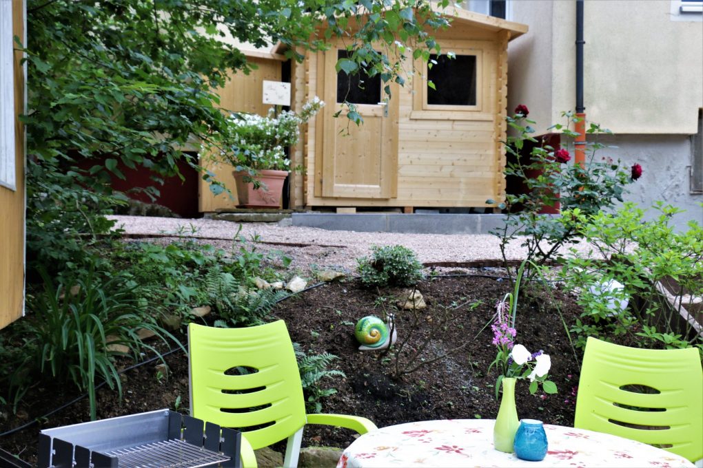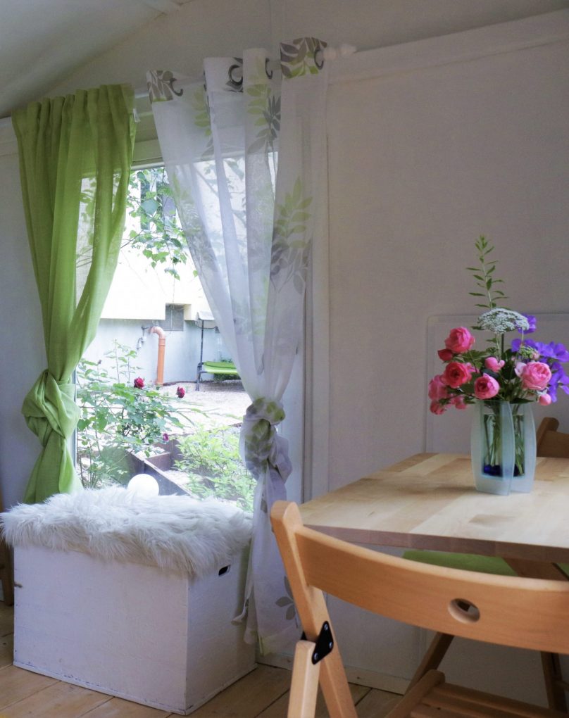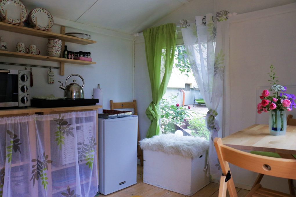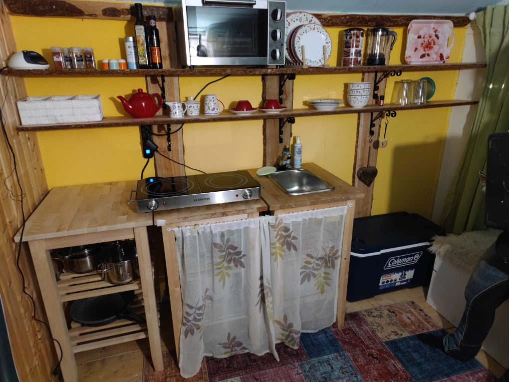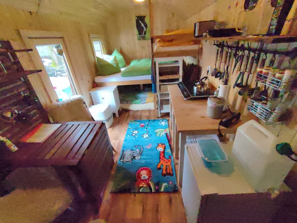 Hier unser Schäferwagen „Kuschelhöhle“, welches sich unterhalb unseres Wohnhauses befindet.