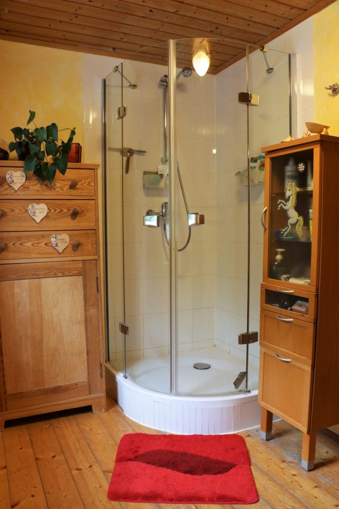 Bitte beachten Sie, dass wir kein Hotel sind. Die Bäder werden gemeinsam genutzt und im Interesse aller ist es sinnvoll eine Kosmetiktasche mit zu nehmen, welche man dann auch wieder mit zurück in die Unterkunft nimmt. In jeder Unterkunft hängt eine Tasche die ihr dazu benutzen dürft. Wenn ihr Handtücher gebucht habt, findet ihr eurer Badetasche. Bitte benutzt Klobürsten und Duschabzieher das auch der nächste Gast ein sauberes Bad vorfindet.