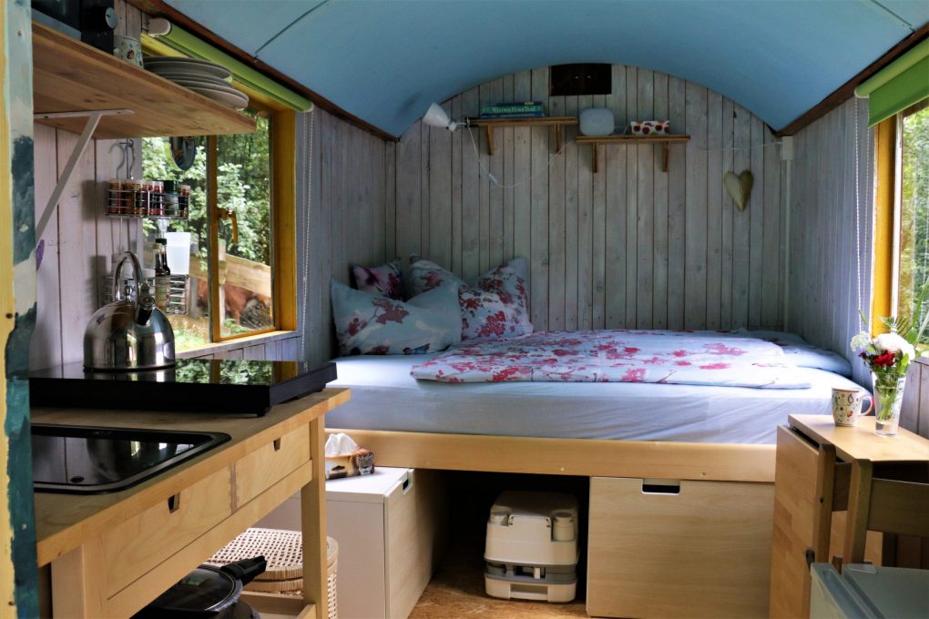 Unser neuer Schäferwagen „Morgensonne“ (für bis zu 4 Erwachsene)